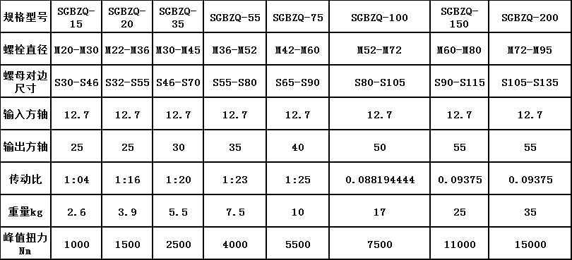 扭力倍增器規(guī)格型號(hào)