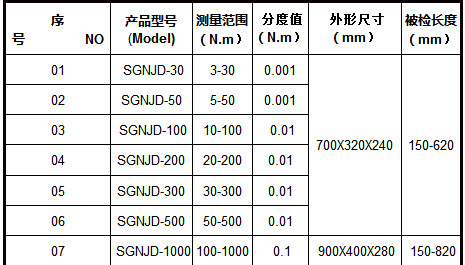 SG系列便攜式扭矩扳手檢定儀具有靜態扭矩檢測功能。該扭矩扳手檢定儀產品顯示準確穩定、安裝簡便和使用等。我司扭矩扳手檢定儀采用特別的沖擊和附加力的結構設計,確保了扭矩檢測穩定、、,適于生產裝配現場各類型扭矩工具的在線力矩調整及檢測。其附件的標定裝置(選配件)可對該扭矩扳手檢定儀產品進行定期校準。